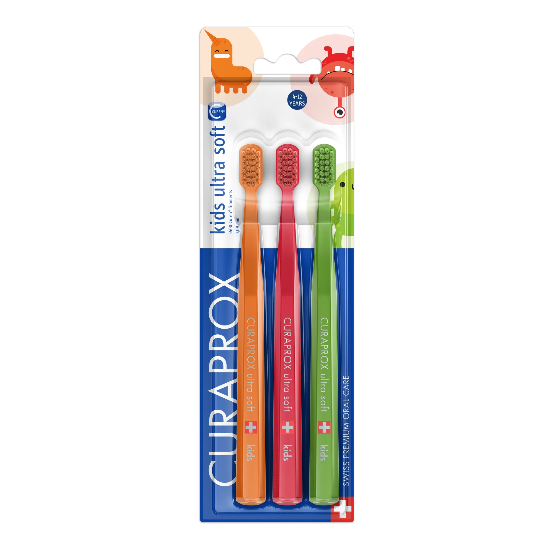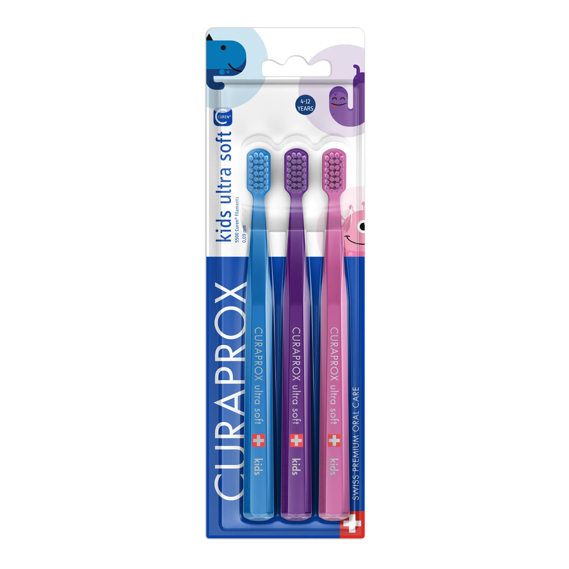 שלישיית מברשות השיניים לילדים Curaprox Kids Ultra Soft נועדה להעניק צחצוח עדין, יעיל ומהנה לילדים מגיל 4 ומעלה.